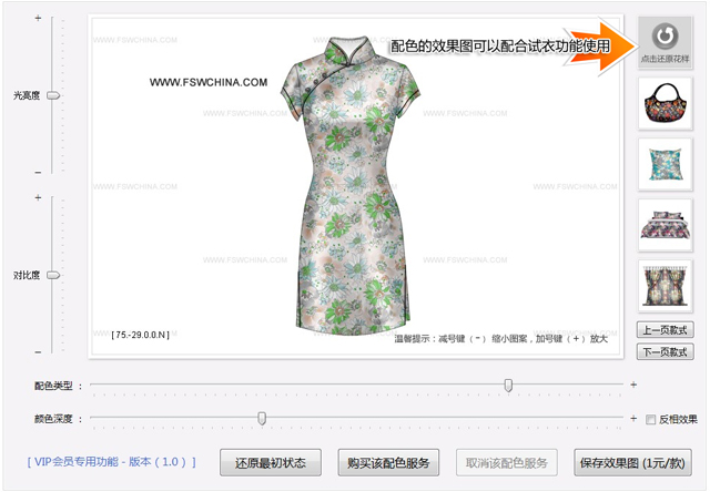 (2) VIP會(huì)員除了可以瀏覽到6種隨機(jī)配色效果圖外,還可以使用