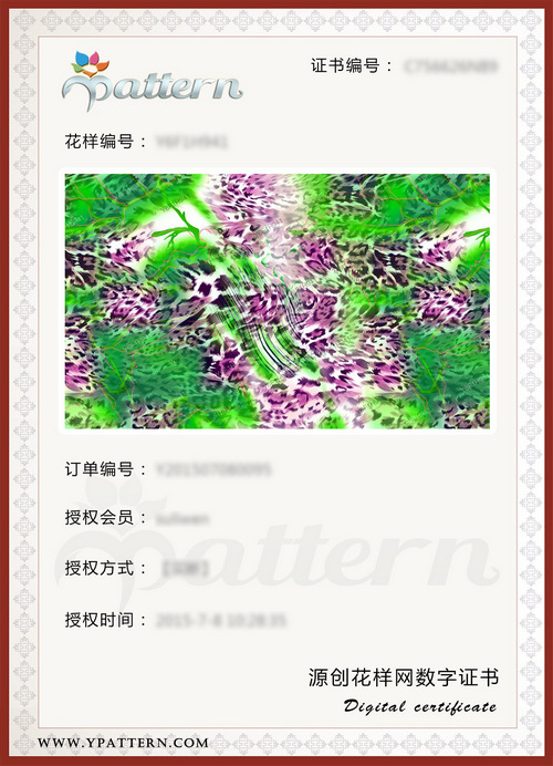 對于出售的花型圖案,無論購買的是使用權(quán)還是買斷花樣,在購買成功后提供一張購買數(shù)字證書圖片給客戶并同時(shí)上傳到第三方網(wǎng)站,以便客戶萬一要維權(quán)時(shí)能夠有充足的證據(jù)。