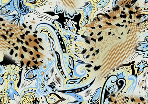 柬埔寨絲綢多樣的花紋圖案、大膽的構(gòu)思設(shè)計(jì),以及豐富的色彩和種類(lèi)都令人吃驚,柬埔寨的花鳥(niǎo)風(fēng)月都被精致地織入絲織品中。那迦的鱗片以及互相纏繞在一起的那迦圖樣是最基本的,將茉莉花的花朵、榴蓮的尖刺、閃亮的星星、孔雀、蝴蝶、雨蛙等自然的景物和吉祥的心愿組合在一起祈禱豐收的祈愿也被織入了絲織品之中。與印尼的紗線扎染織物相同,柬埔寨的絲綢業(yè)是經(jīng)過(guò)海上的絲綢之路由印度傳來(lái)的,同時(shí)也受到通過(guò)陸上絲綢之路傳來(lái)的阿富汗等西亞國(guó)家絲綢的影響。