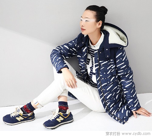 這是本篇所提到的單品中,小編個(gè)人最愛的一款,所以專門放在文末。秋冬服裝以深色為主,好搭配,好打理,藏藍(lán)的基色上,白色紋路起到了提亮的作用。帽子可拆卸,個(gè)人更愛有帽子的感覺,白色毛毛很軟萌。