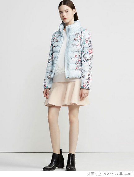 印花有很多種可能,就像春天也有很多可能,繁花似錦璀璨奪目,也有素雅溫和低調(diào)安然。藍(lán)色為底,未見(jiàn)花朵靈動(dòng)先行。喜鵲登高枝,多么俗氣而又多么喜慶的圖案啊,花姑娘俏迎春,從羽絨服開(kāi)始吧。
