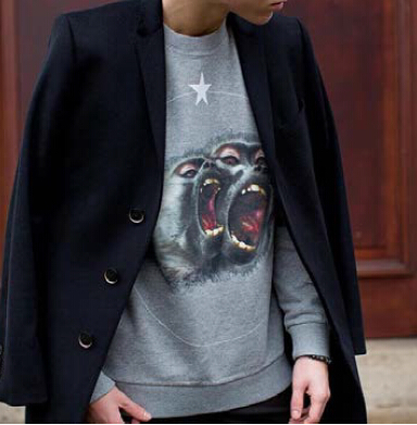 與中國農(nóng)歷猴年的主題不謀而合,紀(jì)梵希2015秋冬系列和2016早春系列中,出現(xiàn)了一個(gè)令人矚目的印花元素mdash;mdash; Monkey Brother印花。正如一經(jīng)推出便大受歡迎的鯊魚印花和小鹿斑比印花,紀(jì)梵希創(chuàng)意總監(jiān)Riccardo Tisci潛移默化地將動(dòng)物元素融入到時(shí)裝設(shè)計(jì)中,全新的Monkey Brother印花在農(nóng)歷猴年的氛圍下迅速成為了新一季的出色亮點(diǎn)。