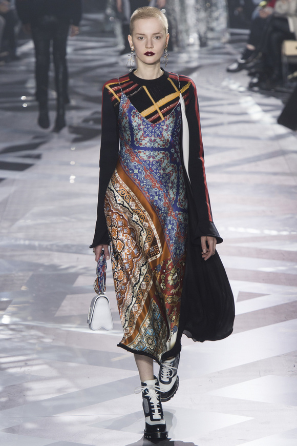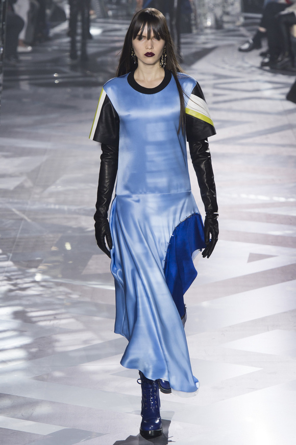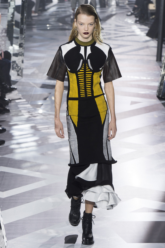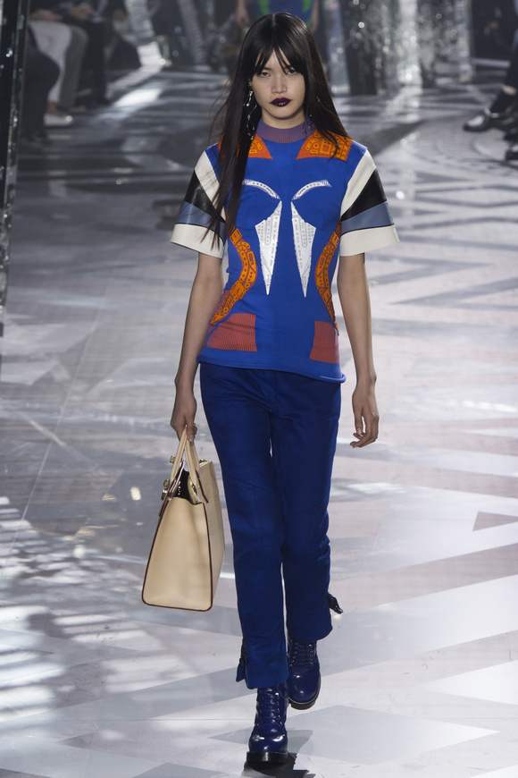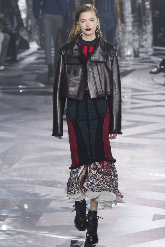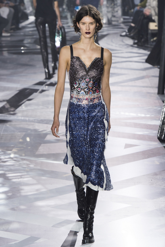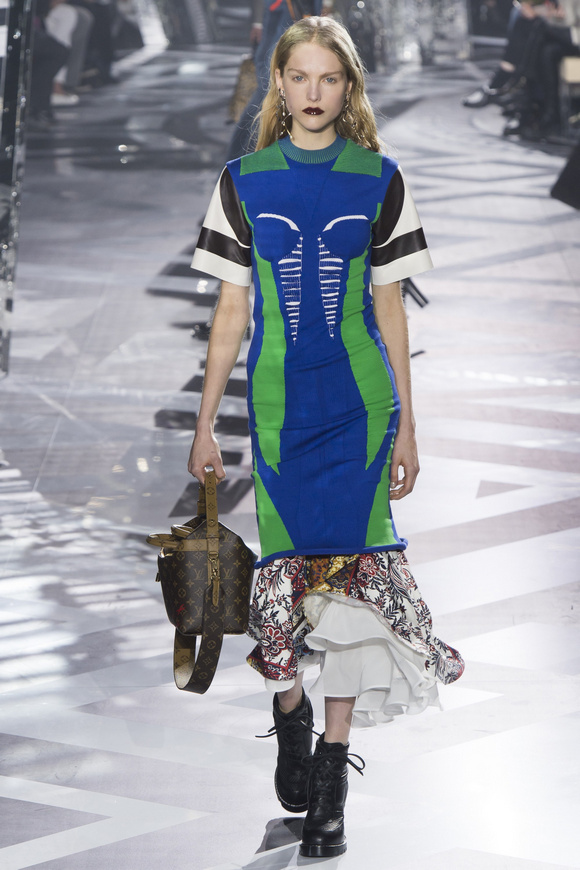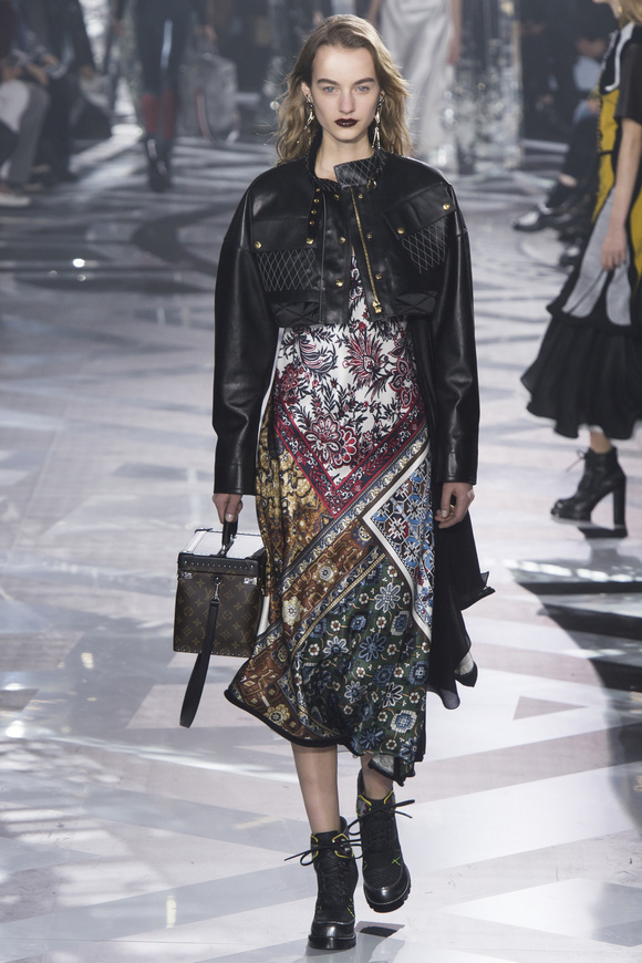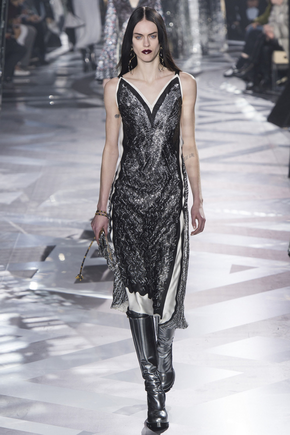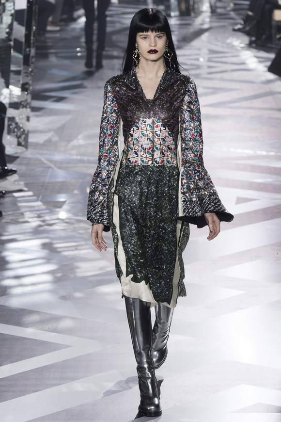 旅行,一直都是Louis Vuitton永恒的主題。鏡子所制成的圓柱,使用水泥以及破碎的鏡片,是對于Justin Morinrsquo;s ldquo;融化之骨ldquo;的重新演繹,本季,Nicolas Ghesquiegrave;re用ldquo;未來考古學rdquo;概念,發(fā)現了未來的考古之旅。秀場布置得如同在水底發(fā)現的亞特蘭提斯城般,失落的未來城市。這是一個由破碎的鏡子所組成的城市,半頹半傾,但破碎的廢墟中充斥著高科技的未來。