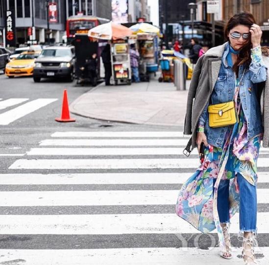 時(shí)尚達(dá)人們演繹出今夏印花與丹寧搭配的多種可能性,總有一款適合你!模特伍靜麗選擇Leonard潑彩印花連身裙,搭配一件中性丹寧外套,在視覺(jué)上平衡了印花的甜美,使得整體造型即散發(fā)出柔美氣息又率性十足。博主Maryna Kovaltchuk提供了另一種時(shí)髦個(gè)性的穿著方式,印花襯衫和牛仔喇叭褲的組合,充滿80年代的復(fù)古腔調(diào)。