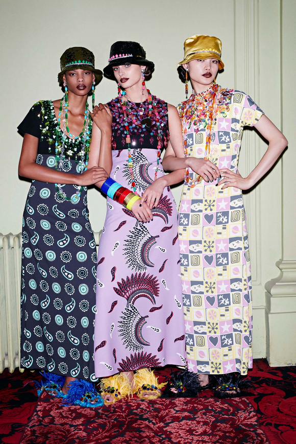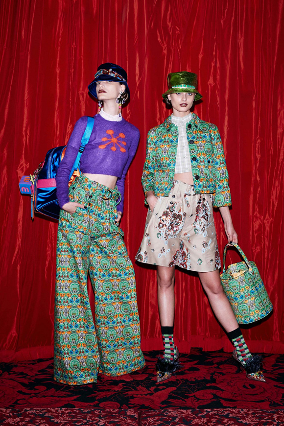 Miu Miu 繆繆這一季,跟以往一樣,無論從T恤、裙子還是編織草帽,都是強調印花與裝飾。這些元素未必能引起90零后的懷舊感,因為他們實在太年輕了。但這完全一點都沒有關系,她們看起來就像一系列色彩繽紛的度假服飾系列。
