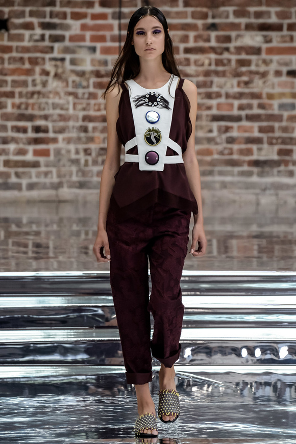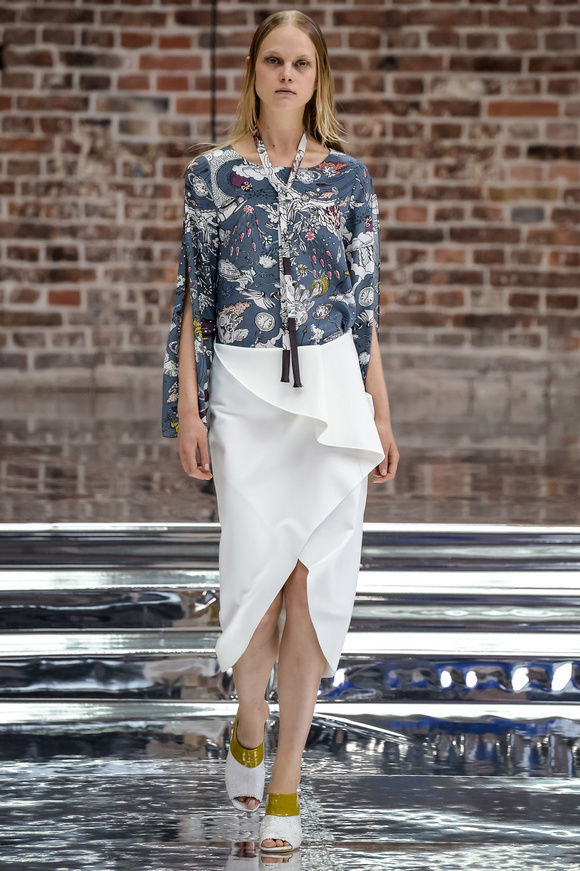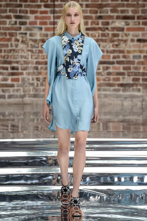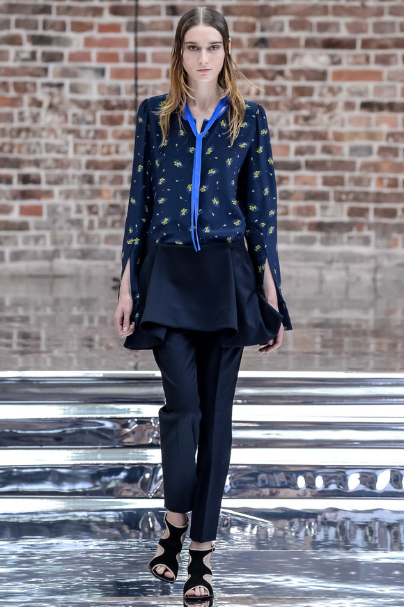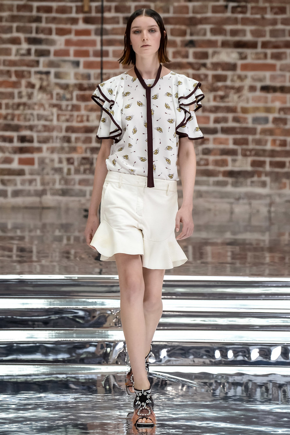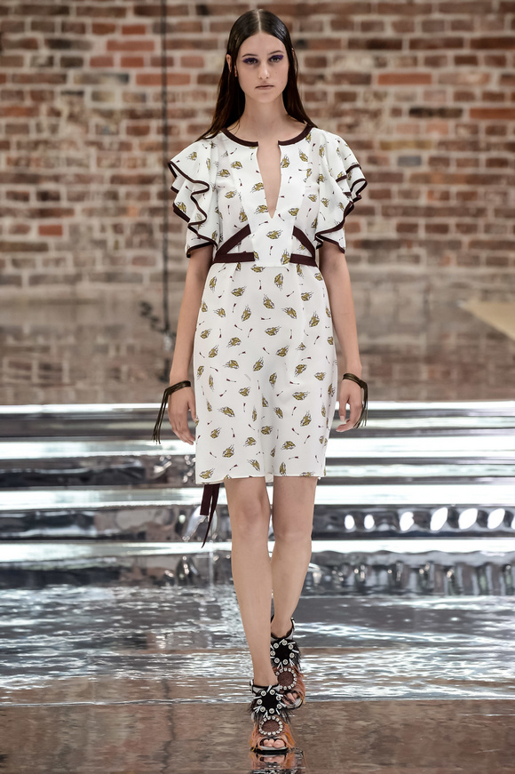 Schumacher 淑美赫 2017春季的看點(diǎn):輕浮、閃亮的胸針,荷葉的邊足夠吸睛。她始終以其獨(dú)特的方式巧妙地打破時(shí)尚傳統(tǒng)并且樹(shù)立了與眾不同的風(fēng)格,這其中融入了Dorothee Schumacher本人的幽默、輕松的生活態(tài)度以及她的心血。設(shè)計(jì)師通過(guò)對(duì)自我的認(rèn)識(shí)將其豐富的生活融為一體,并注入到設(shè)計(jì)當(dāng)中。