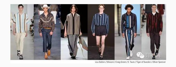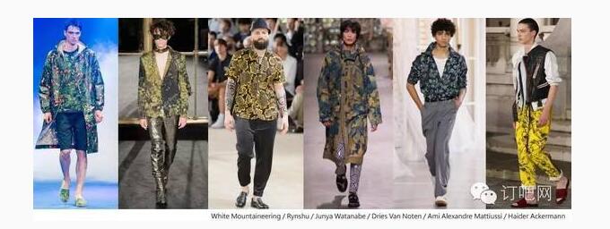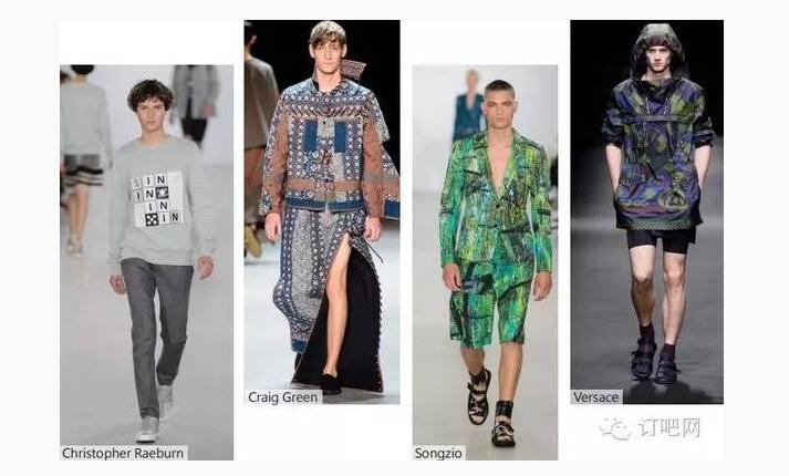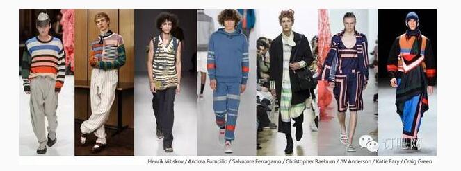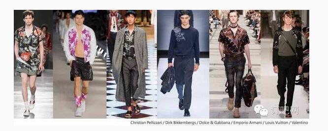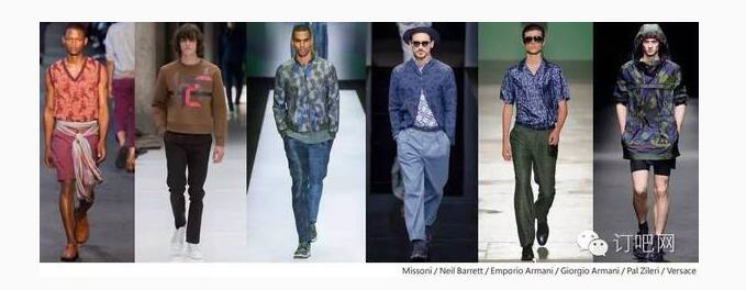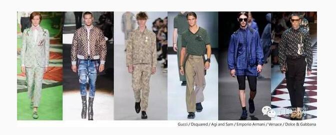 綜觀 2017 春夏巴黎、米蘭、倫敦男裝周,未來男裝在印花圖案的呈現(xiàn)上將混合 70 年代、80 年代和 90 年代元素,變化出一種新時代的改良風格。整體來說,沒有明確的季節(jié)性,多采中性的暗色調(diào)色板。叛逆非主流的醒目圖像為服裝營造出硬派的都會街頭風格。經(jīng)典的條紋延續(xù)至明年春夏,以優(yōu)雅的休閑風或時尚的條紋混搭,呈現(xiàn)不同的條紋風情。中東風格的精美花紋是現(xiàn)代花美男的優(yōu)選,同時符合環(huán)球旅行者的出走潮流。此外,不規(guī)律的重復碎花、叢林迷彩、稀有動植物、幾何圖案,也仍保有重要地位。