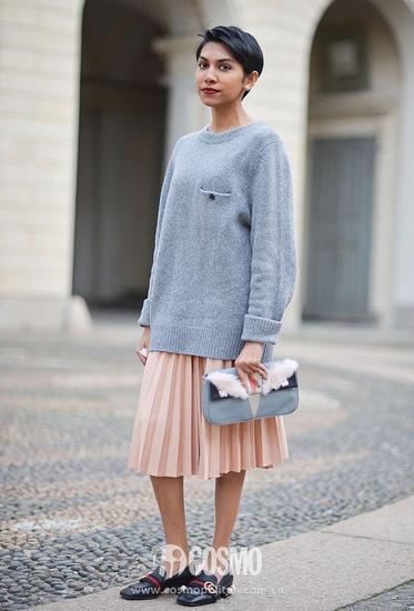 這是島嶼一直在推薦的冬日最佳內(nèi)搭組合之一,因?yàn)槊聦?shí)在是秋冬單品中不能忽略掉的。毛衣搭配長(zhǎng)裙更是小粗腿星人的救星,百褶裙;裹身裙都是可以選擇的單品之一,oversize的款更是用來搭配裙子的必勝法寶,帥氣的感覺和優(yōu)雅的感覺混搭在一起,簡(jiǎn)直不能再誘人!