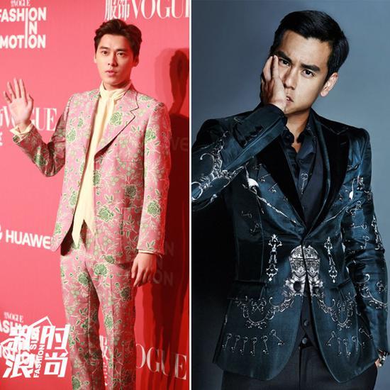 不少男明星也都示范過,把印花和西服正裝結(jié)合起來,倒是一種大膽又時髦的穿法。