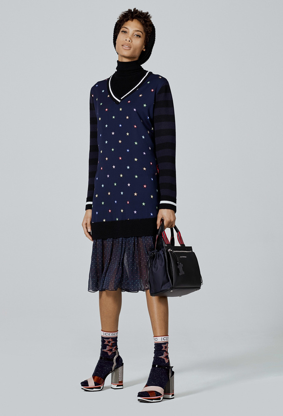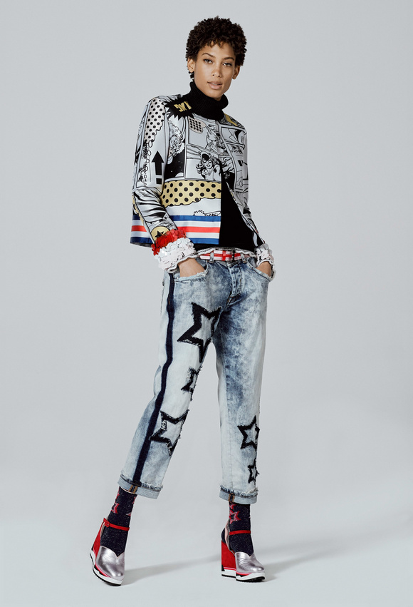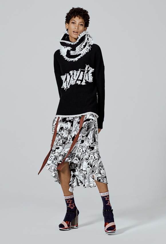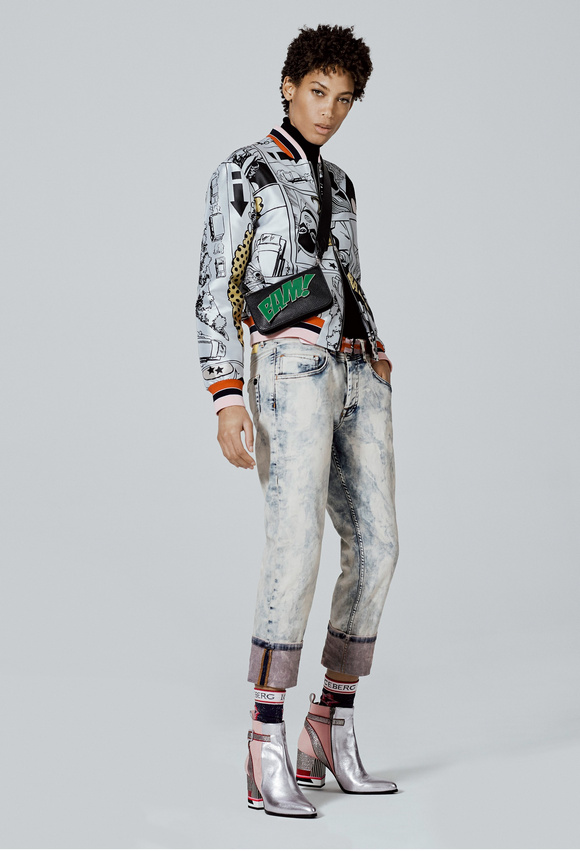 James Long 最近被任命為Icebergs的首席設(shè)計(jì)師,在這一季的設(shè)計(jì)里,他加入了漫畫、運(yùn)動(dòng)以及鮮明的朋克元素,配合意大利的精致和豪華,構(gòu)成了相當(dāng)迷人的好萊塢感覺。