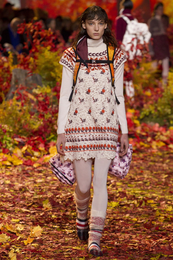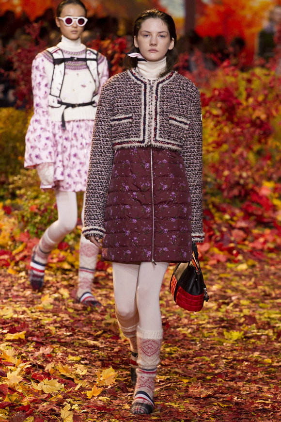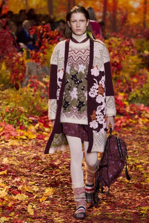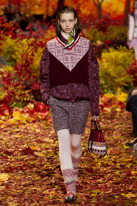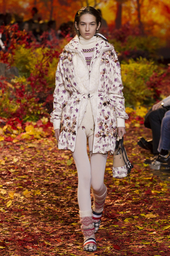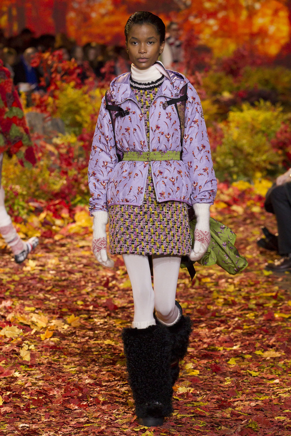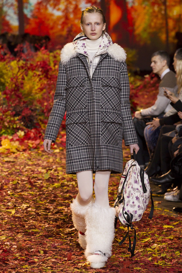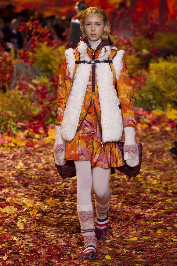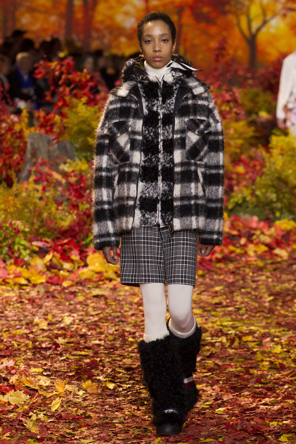Moncler Gamme Rouge這一季的秀場(chǎng)布置成秋天的樹(shù)林,格子夾克、毛絨外套。一個(gè)理想的視覺(jué),看到有歐洲的痕跡,也有加拿大的風(fēng)格。
