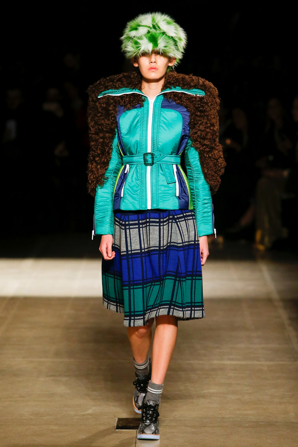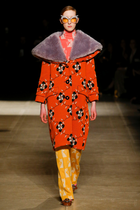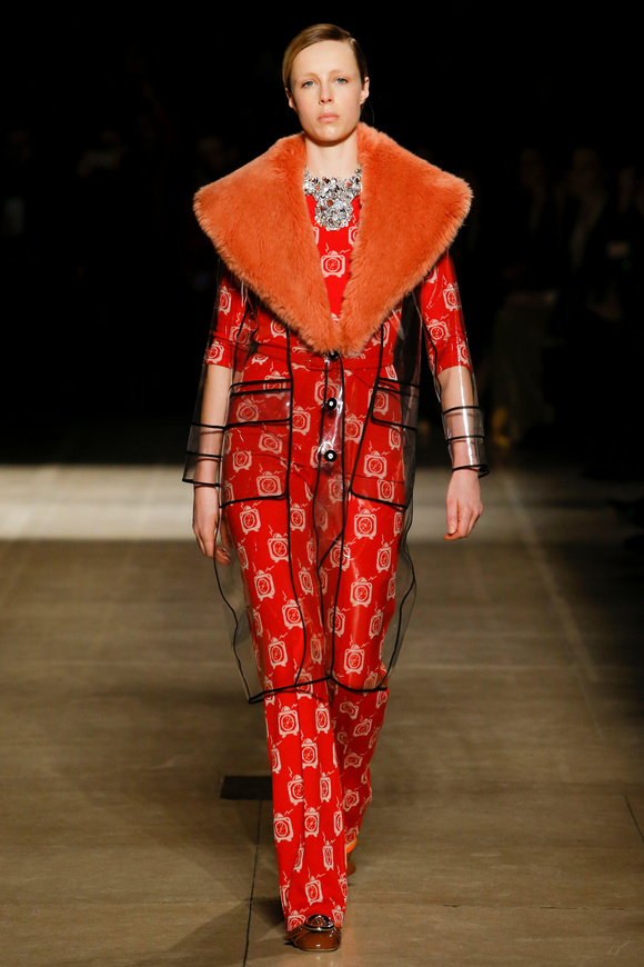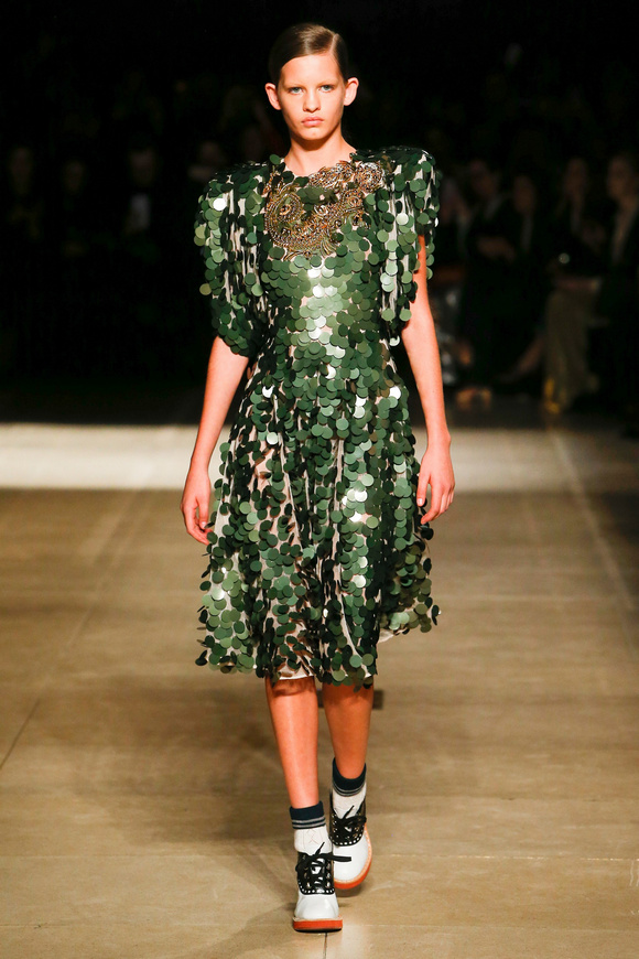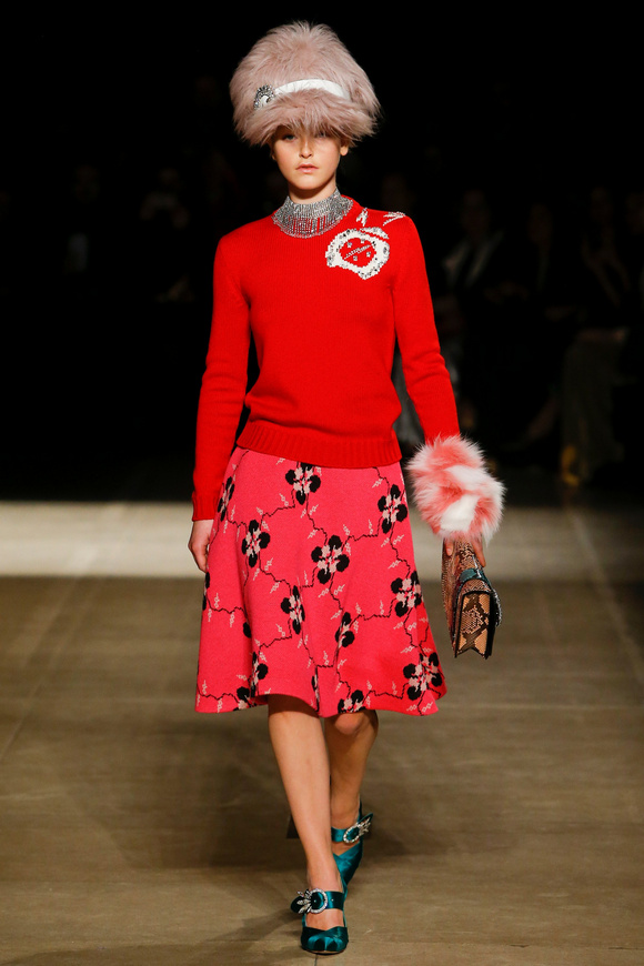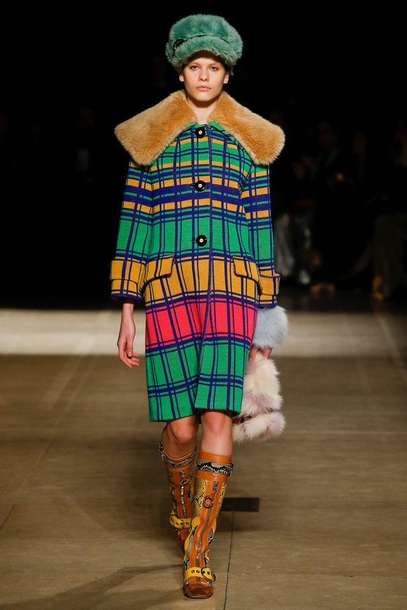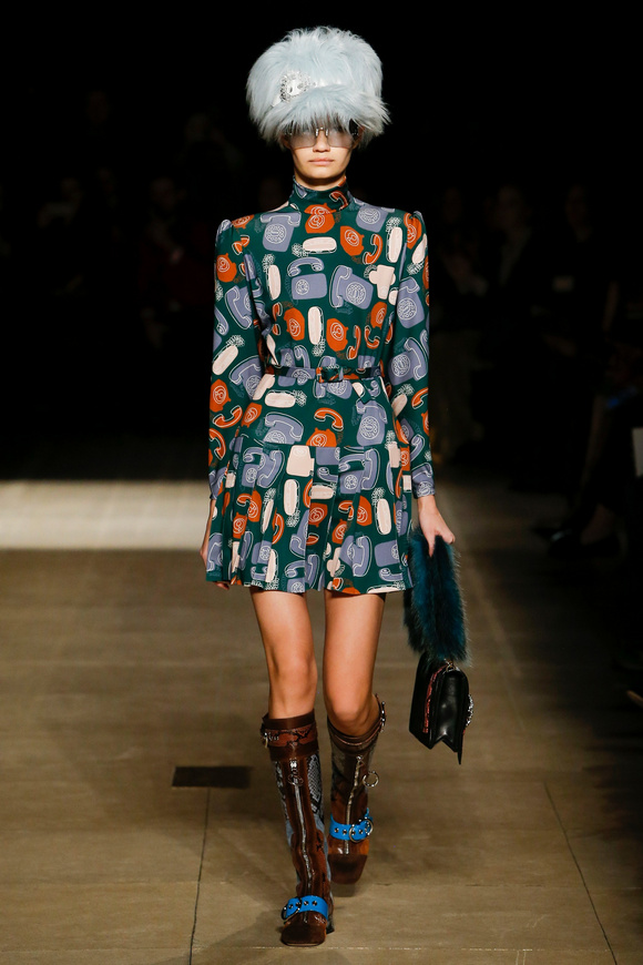 Miu Miu這一季的設(shè)計有融合各種族的女性和背景。毛茸茸的皮草,束腰外衣和閃亮的人造鉆石和亮片,還點綴這巨大的太陽眼鏡。