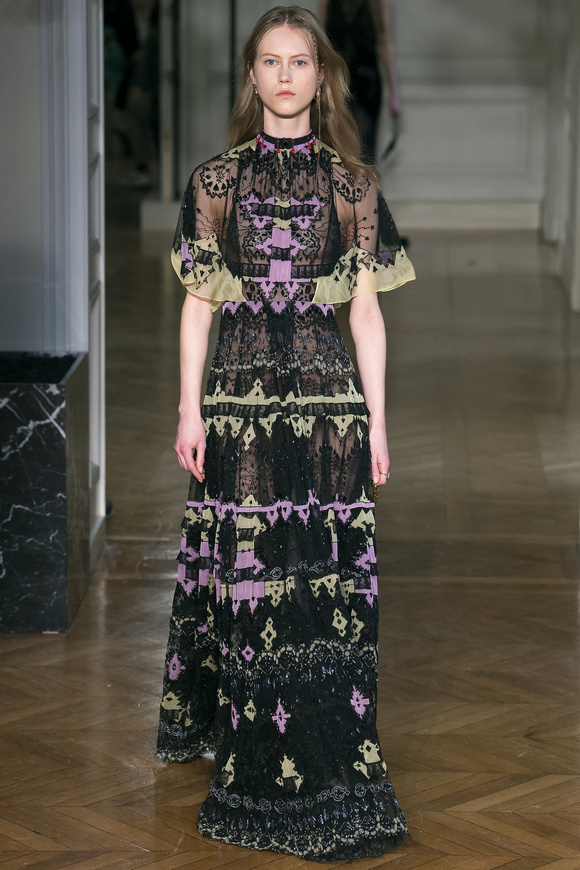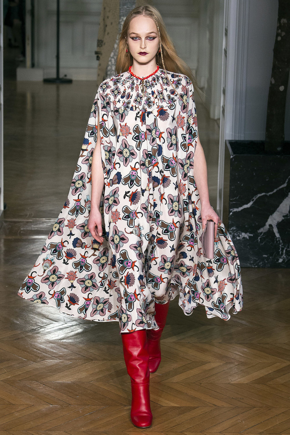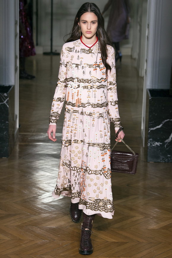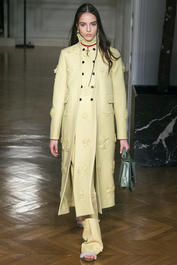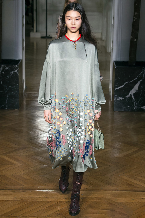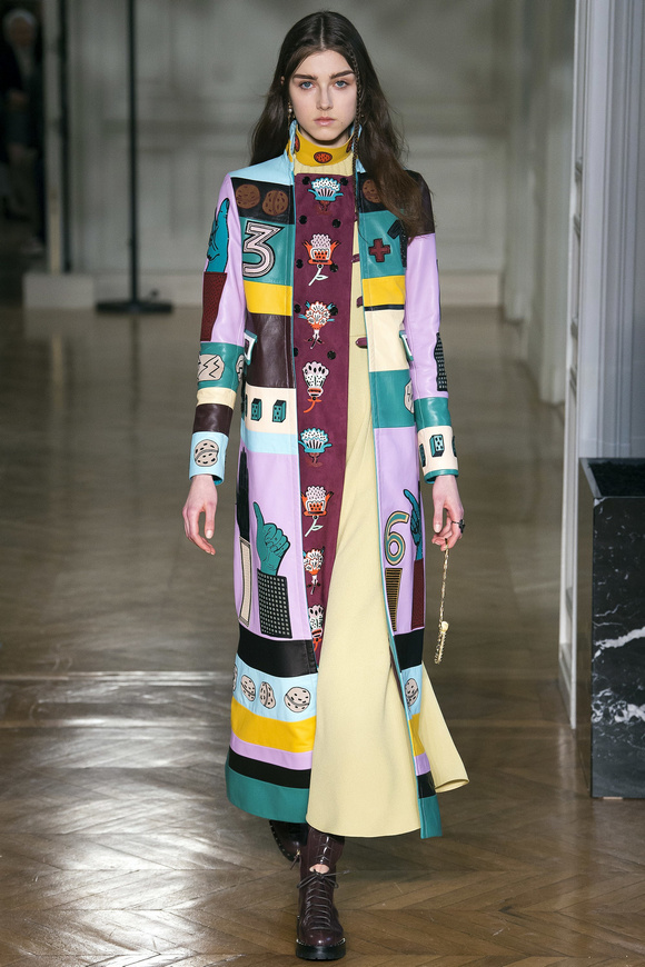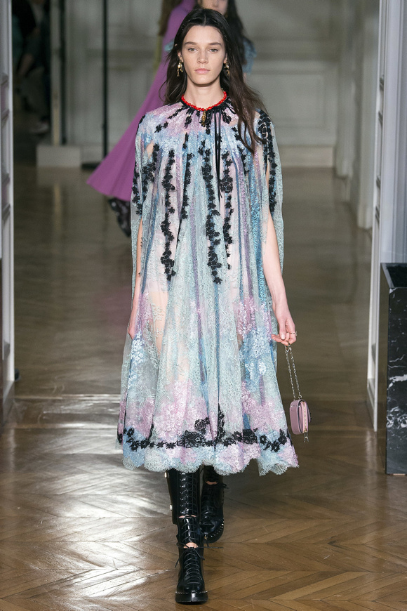 Valentino 2017 秋冬秀甫剛落幕,設(shè)計靈感來源于法國藝術(shù)家Nathalie De Pasquier的設(shè)計作品,結(jié)合維多利亞風(fēng)格打造出奢華有趣的浪漫時尚,由創(chuàng)意總監(jiān) Pierpaolo Piccioli 操刀保持浪漫、唯美的桀騖風(fēng)骨,用輕盈有質(zhì)感的面料加上薄紗、珠片或者鑲邊的碎花,賦予女性一種新的仙氣姿態(tài)。Valentino經(jīng)典的粉紅色還有紅色貫穿秀場,這次還出現(xiàn)了許多繽紛的冰淇淋色,像是奶黃、蜜橘、薄荷綠等,讓沉悶的秋冬多了點活潑的色彩。