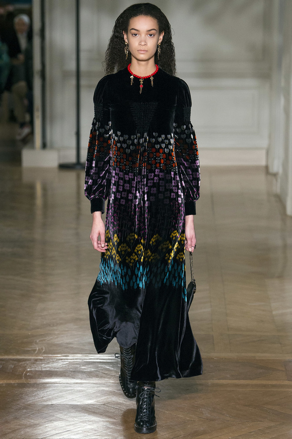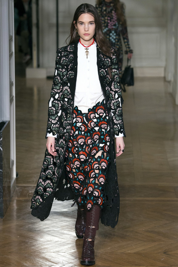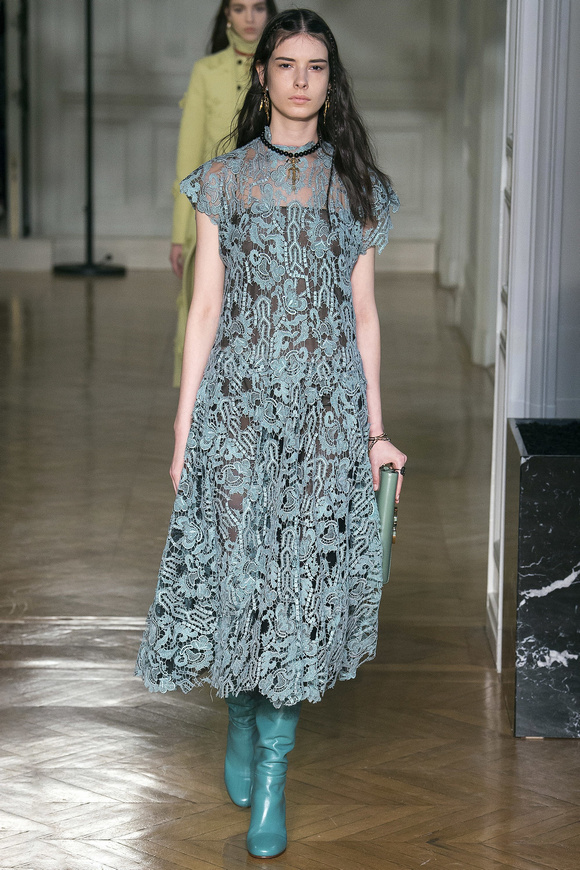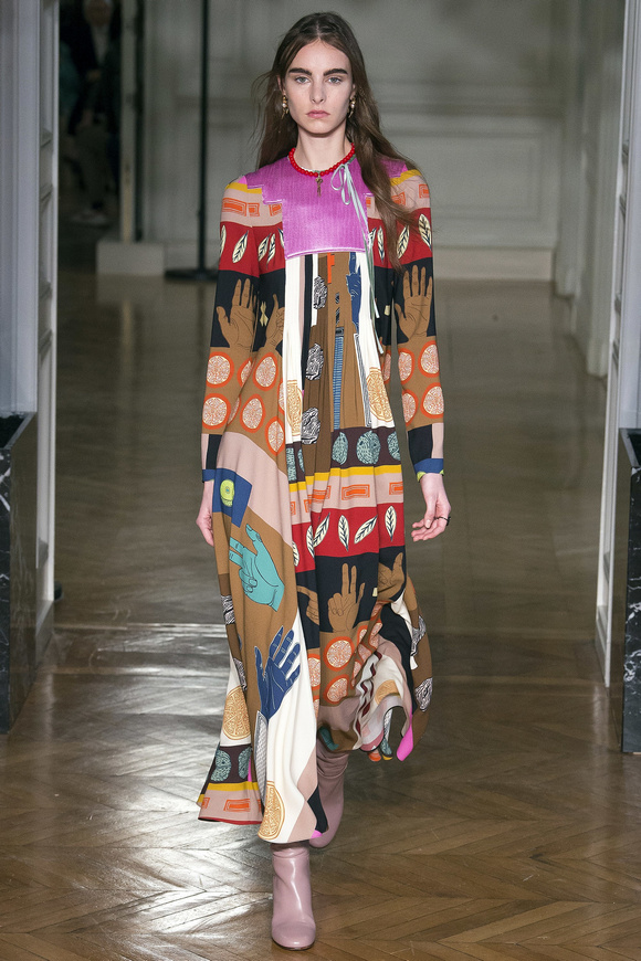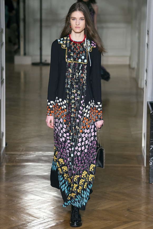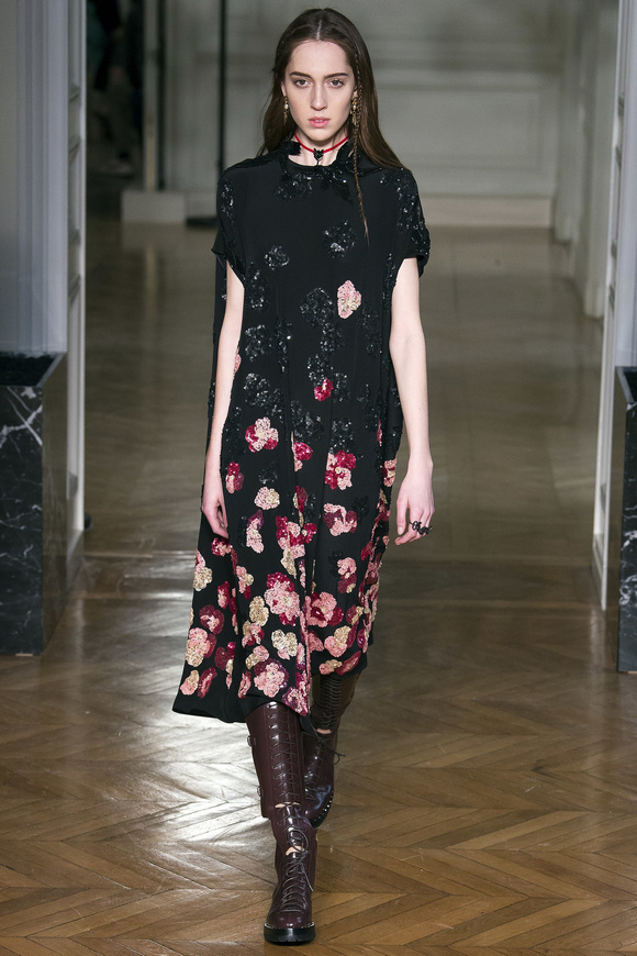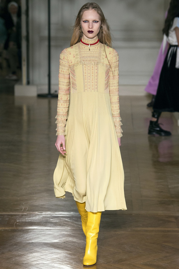 Valentino 2017 秋冬秀甫剛落幕,設(shè)計靈感來源于法國藝術(shù)家Nathalie De Pasquier的設(shè)計作品,結(jié)合維多利亞風(fēng)格打造出奢華有趣的浪漫時尚,由創(chuàng)意總監(jiān) Pierpaolo Piccioli 操刀保持浪漫、唯美的桀騖風(fēng)骨,用輕盈有質(zhì)感的面料加上薄紗、珠片或者鑲邊的碎花,賦予女性一種新的仙氣姿態(tài)。Valentino經(jīng)典的粉紅色還有紅色貫穿秀場,這次還出現(xiàn)了許多繽紛的冰淇淋色,像是奶黃、蜜橘、薄荷綠等,讓沉悶的秋冬多了點活潑的色彩。
