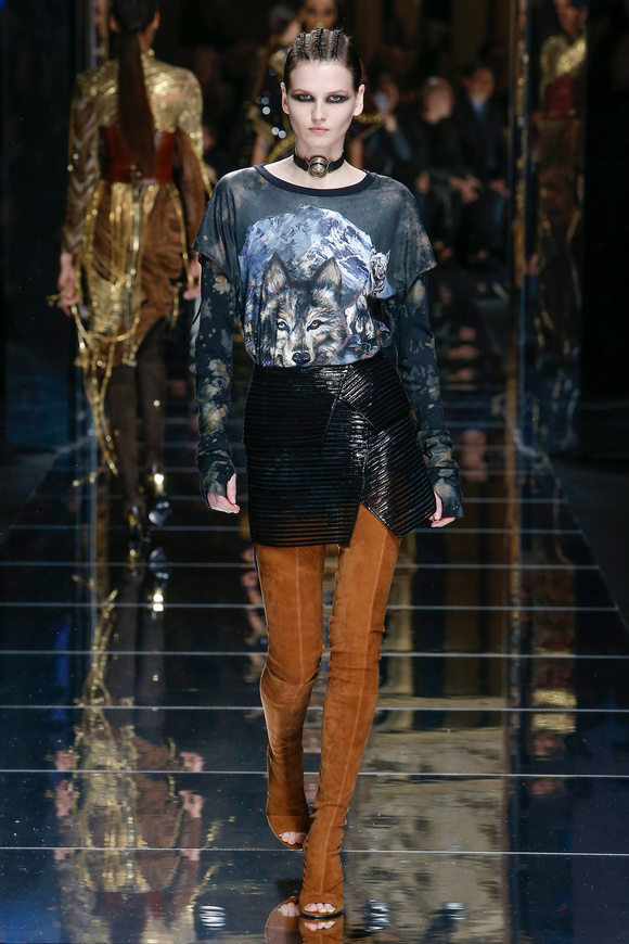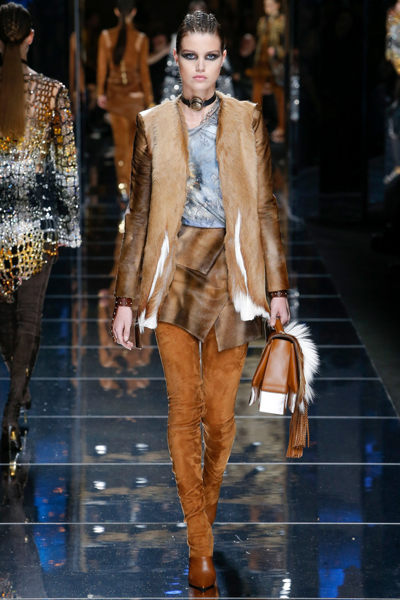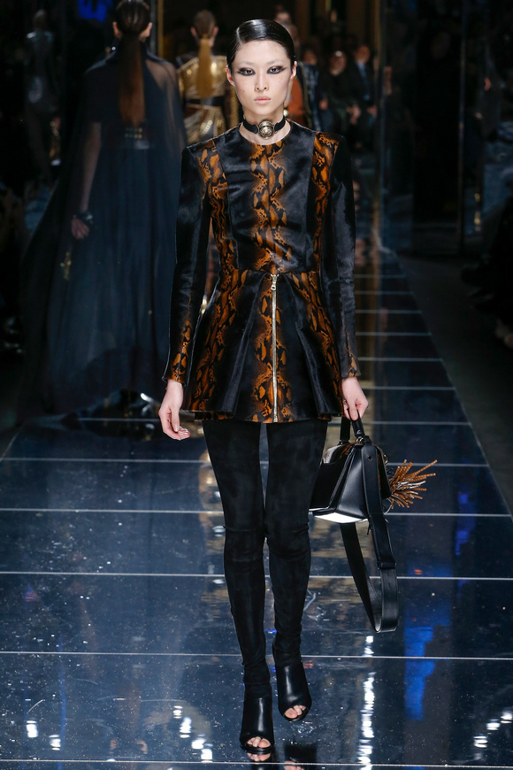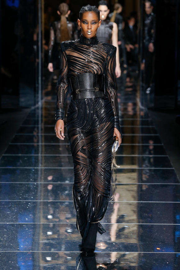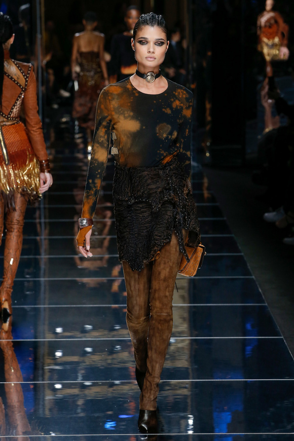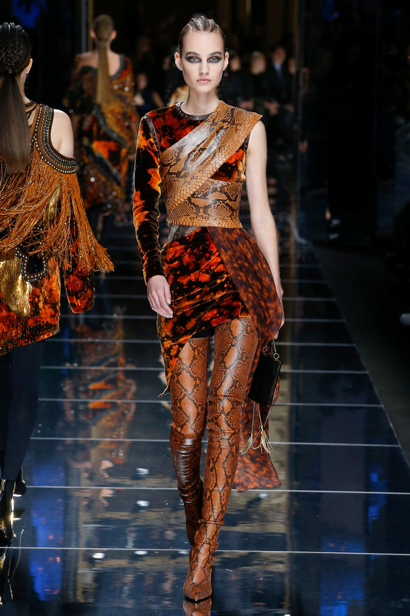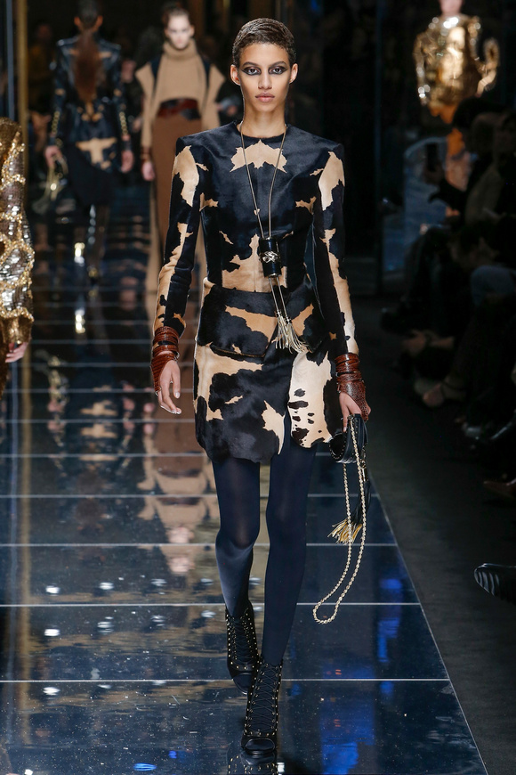 Balmain 巴爾曼的設(shè)計(jì)信念從來(lái)都沒(méi)有動(dòng)搖過(guò),就是廣泛的包容性,超越各色人種。在這一季,Balmain成功開(kāi)發(fā)男裝系列,對(duì)于男裝,也采用了超緊,超短并搭配金鏈子、石榴石串、一季磨砂金亮片。在其他方面,注重顏色的運(yùn)用,黑色、棕色、金色。朦朧的數(shù)碼印花、海馬毛的針織、超大的無(wú)袖羊毛背心外套、蛇皮花紋、扎染的裙子。這一季的設(shè)計(jì)真的令人目不暇接。