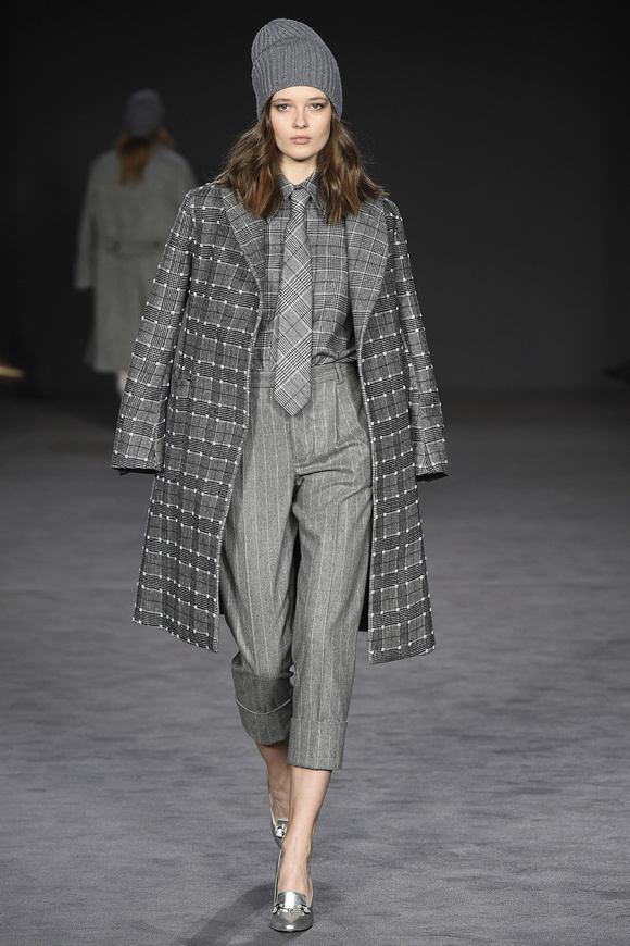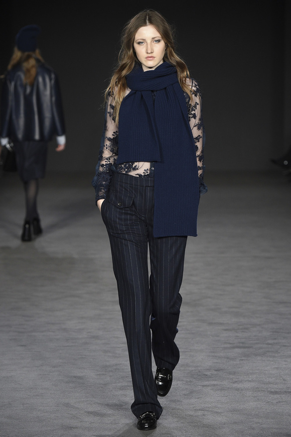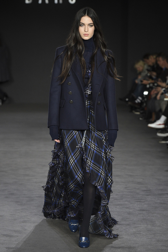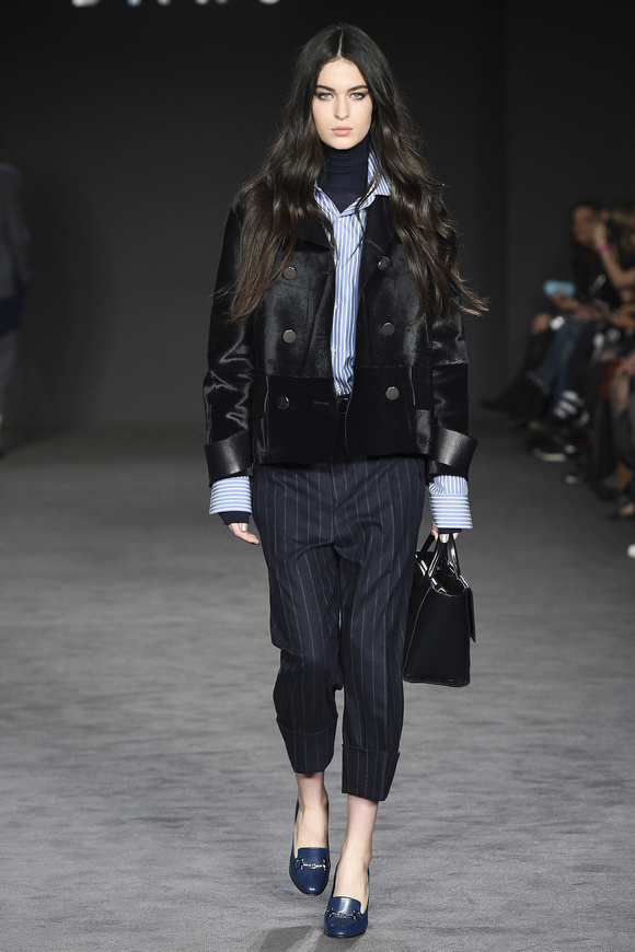 Darks 這一季的發(fā)布會,在面料里融入了一些銀線,令到衣服看起來閃閃發(fā)亮的。條紋襯衫,黑色的外套,如此令人震驚的樸實簡單,卻被設(shè)計出另一種奢華。