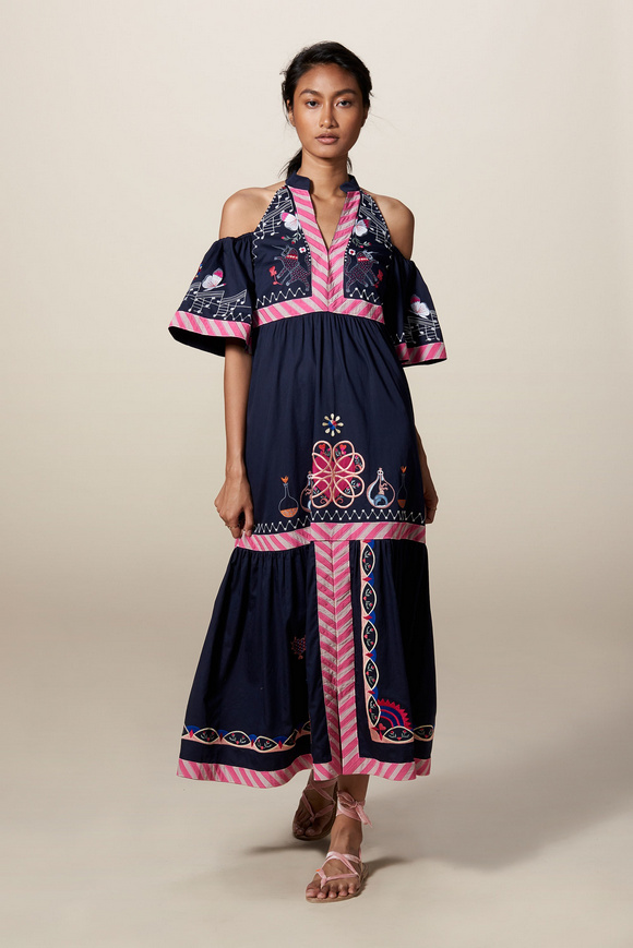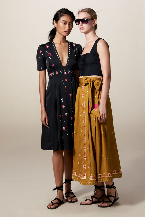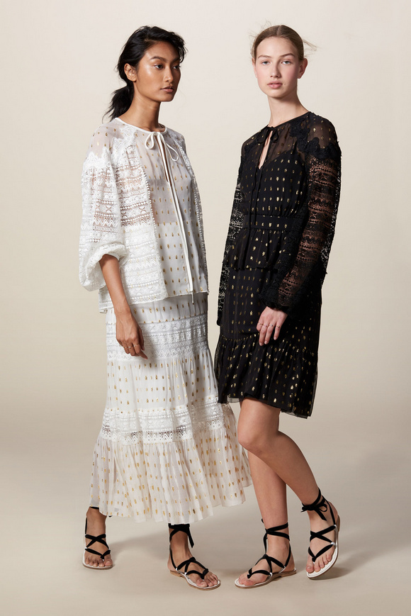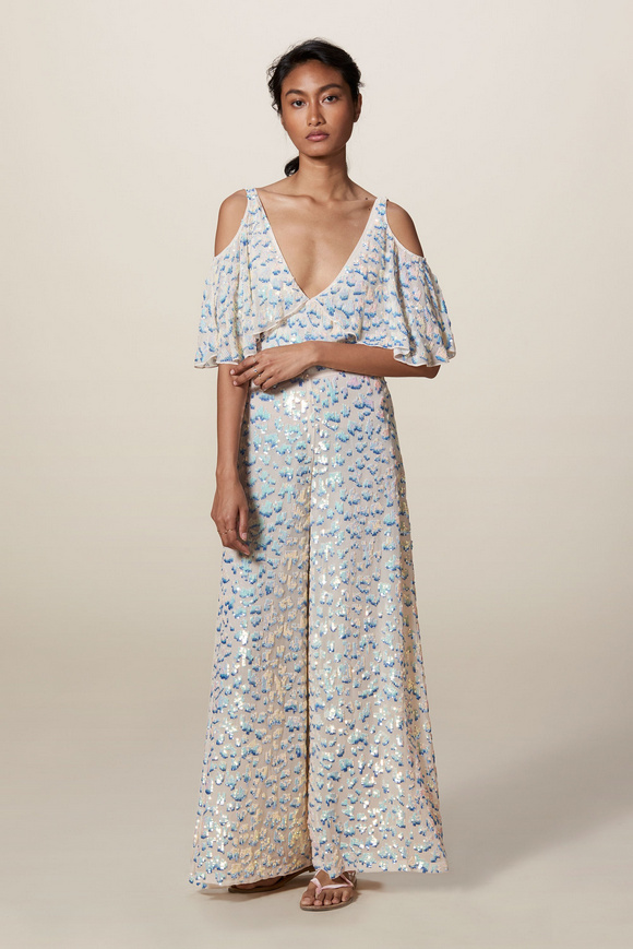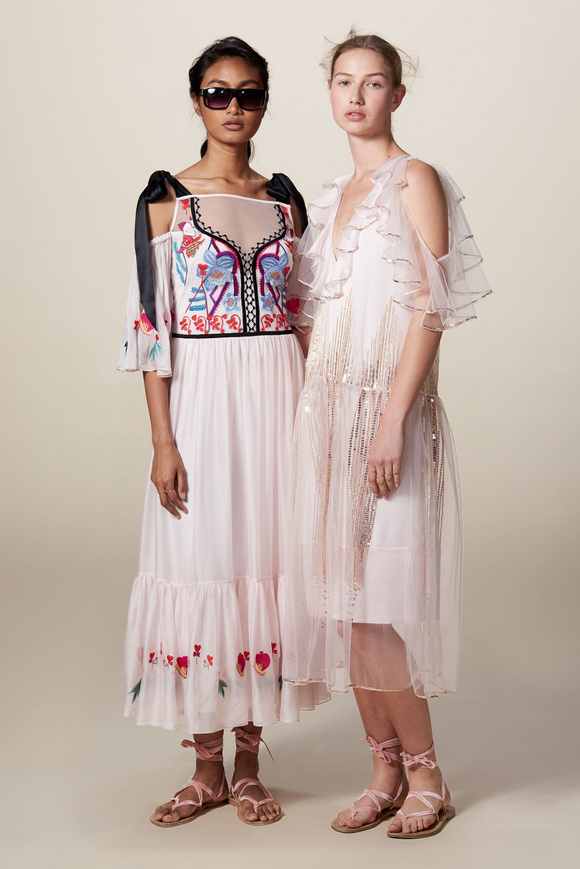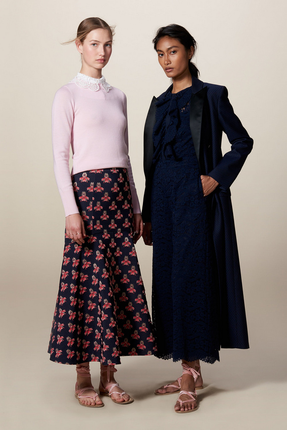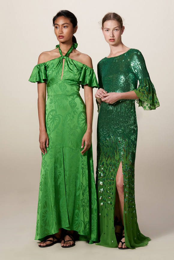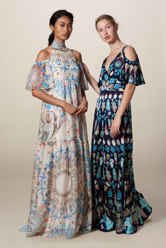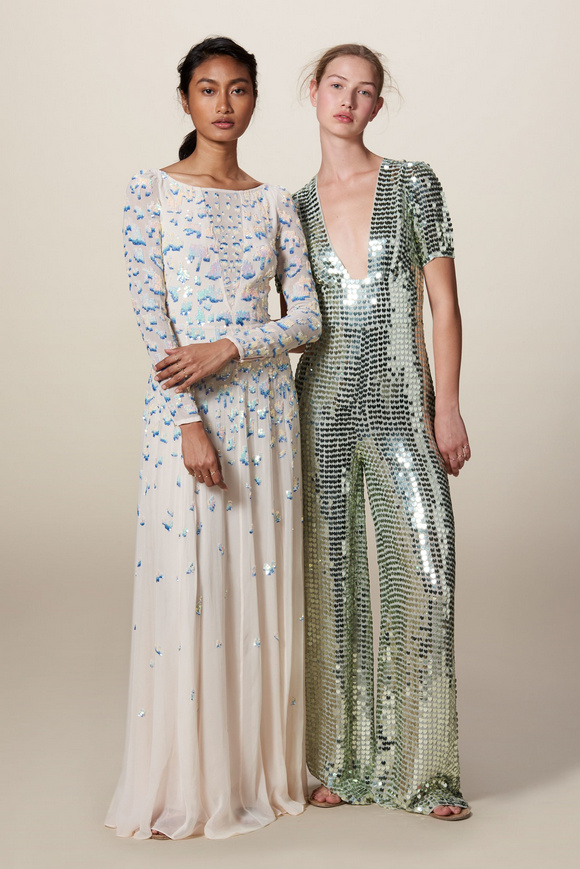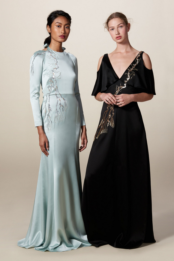 Temperley London 坦波麗倫敦 這一季的休閑服裝的亮點(diǎn)包括魔法圖案、金屬貼壓花朵的魅力,還有密密麻麻的印花、煉金圖紙等。印花裙的特色是運(yùn)用更多的同心圓符文模式。寬腿褲和女巫袍更顯特色;ㄟ叺囊路皖I(lǐng)子細(xì)節(jié)顯示中世紀(jì)藥劑師的酒壺和軌道的行星。心形亮片閃閃發(fā)光的衣服和裙子,更在最后照片中,一個是開放的武裝連衣褲和皺褶的武裝打扮,微亮片從不透明變成藍(lán)色。